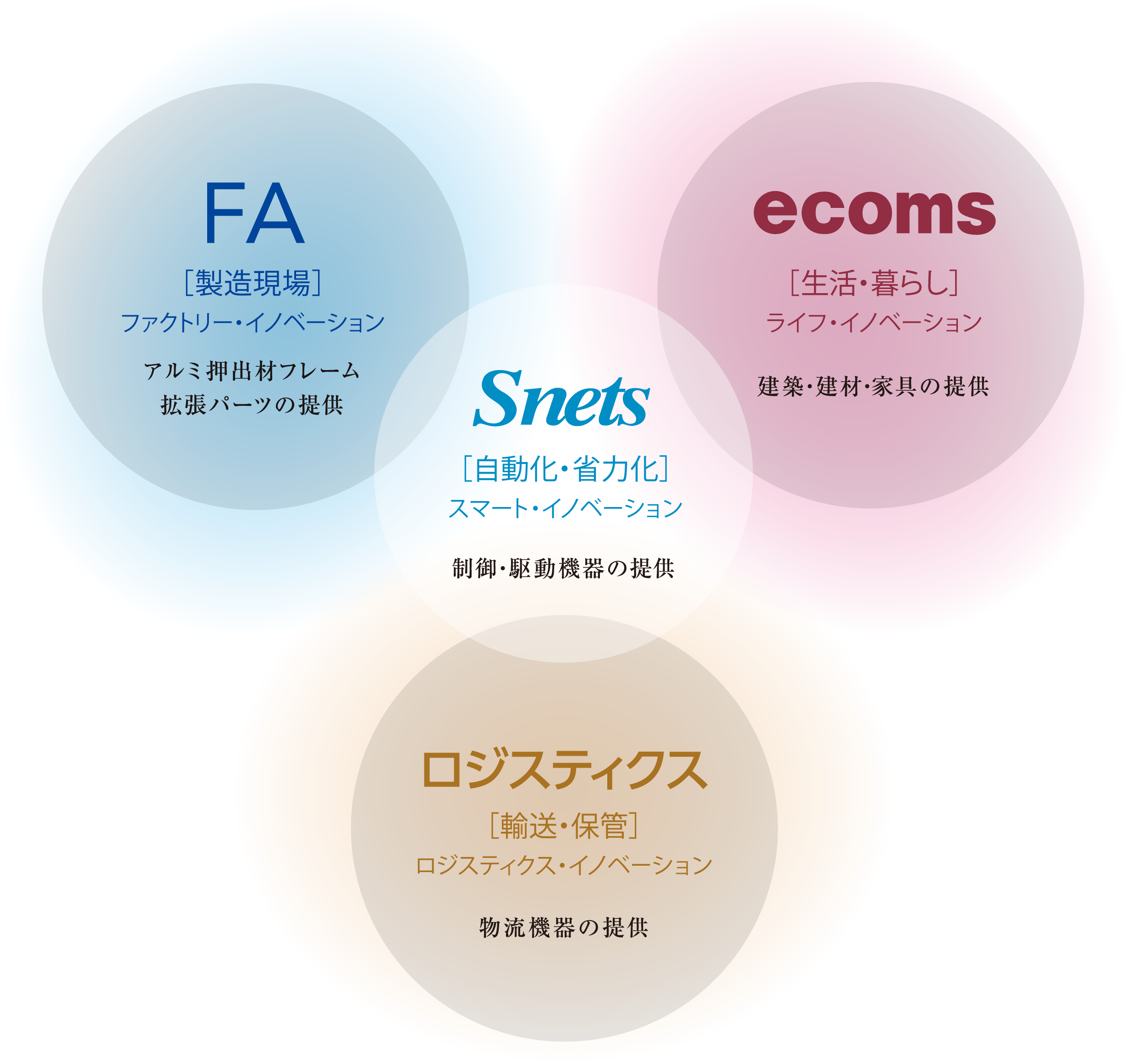 自動化・省力化を推進するSnets事業、この4つの事業を展開しています。